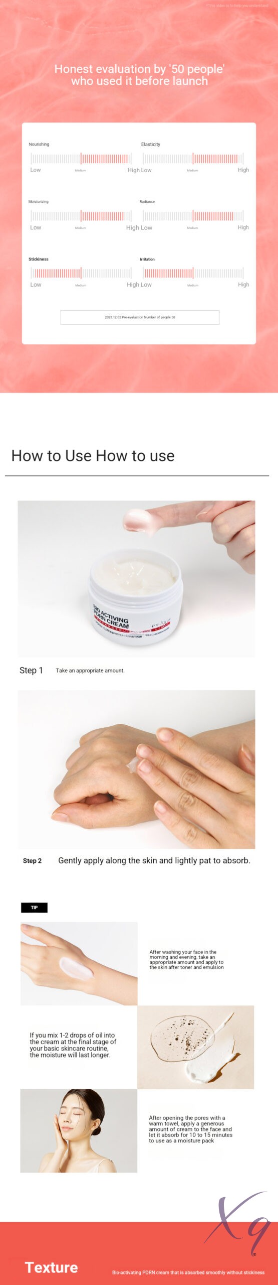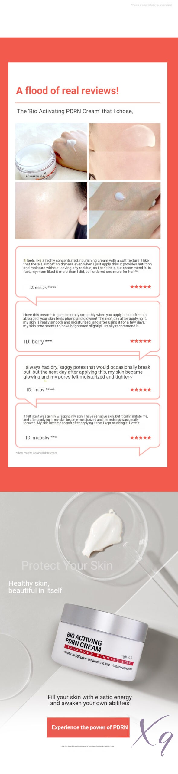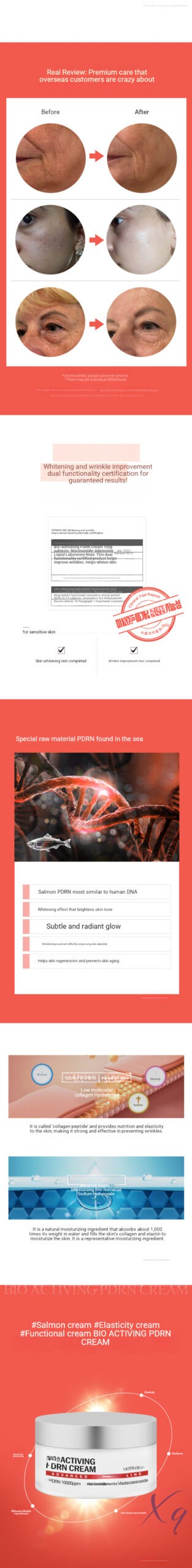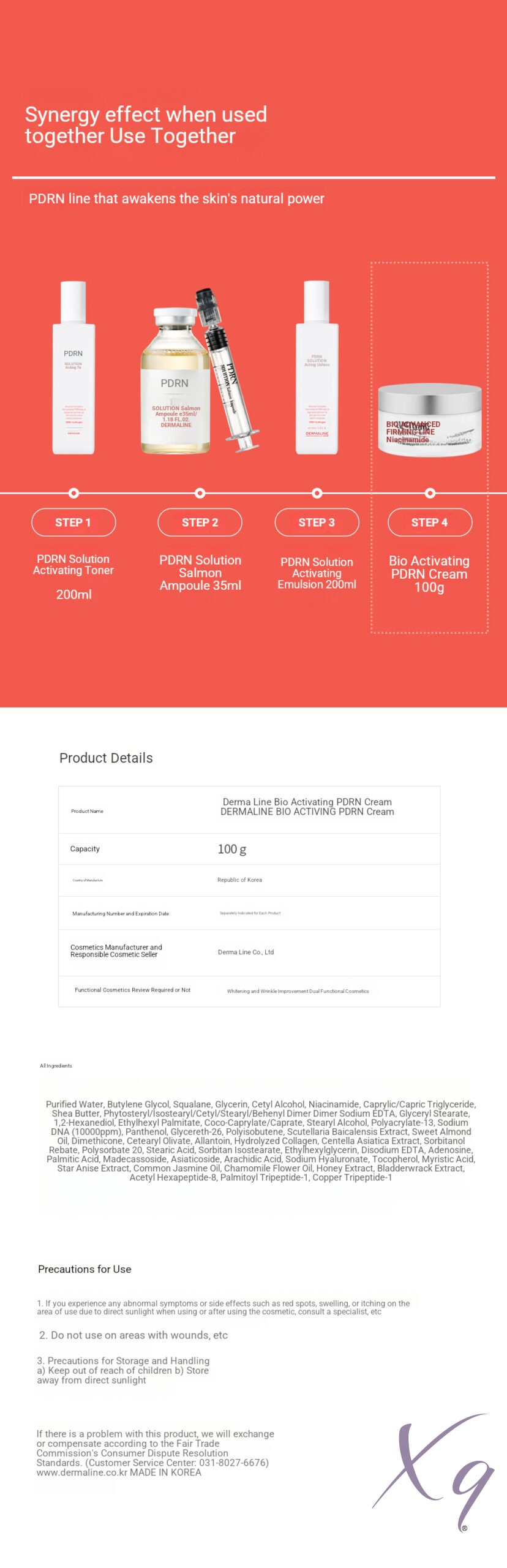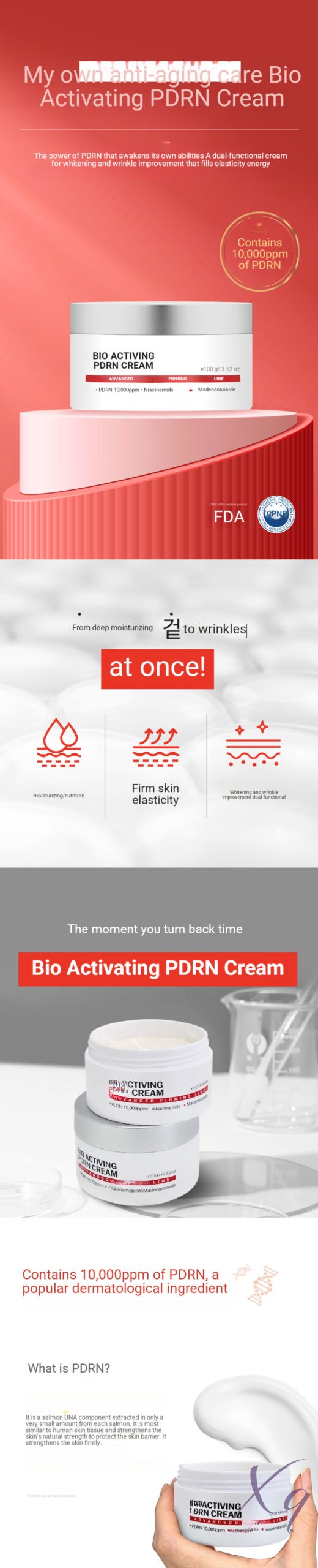 Dermaline Bio Activing PDRN cream is formulated with Salmon DNA PDRN 4,300 ppm and peptide ingredients to enhance skin elasticity and reduce wrinkles.