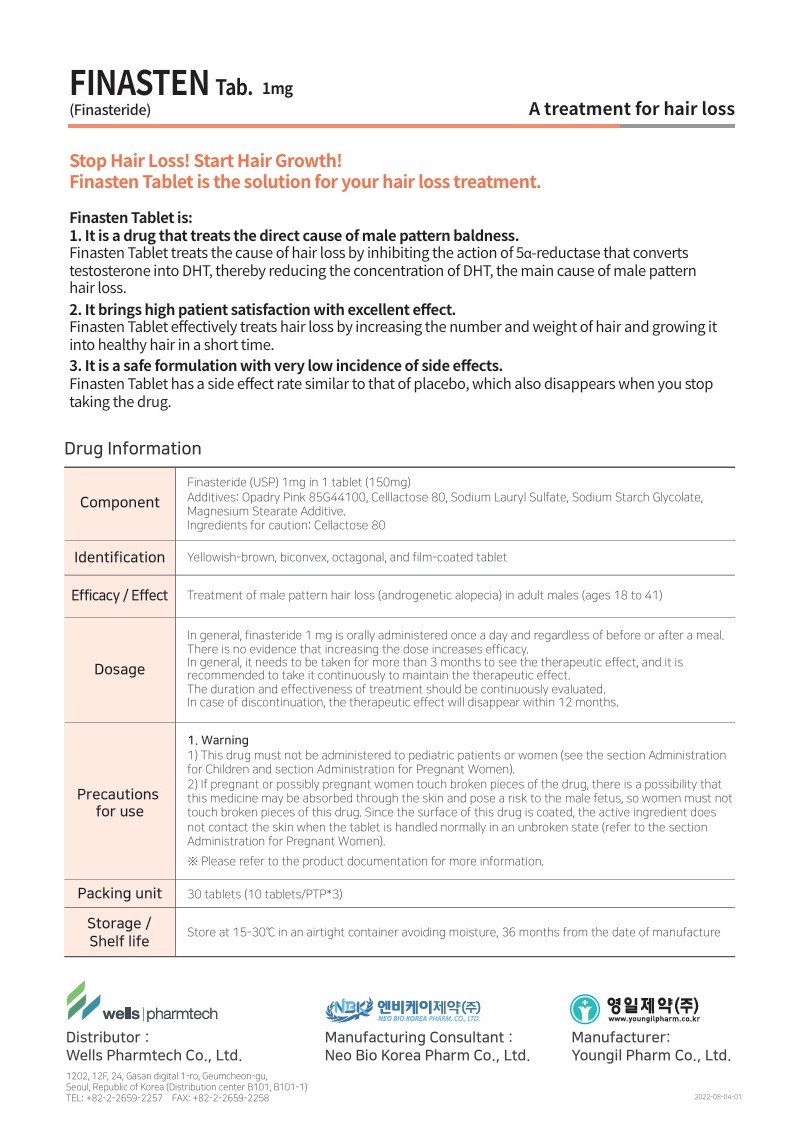 FINASTEN Tab. 1mg targets the main cause of male pattern baldness. It lowers DHT levels, a hormone that shrinks hair follicles. By doing so, it helps reduce hair loss and promotes the growth of thicker, healthier hair. Many men experience noticeable improvements within a few months of regular use.