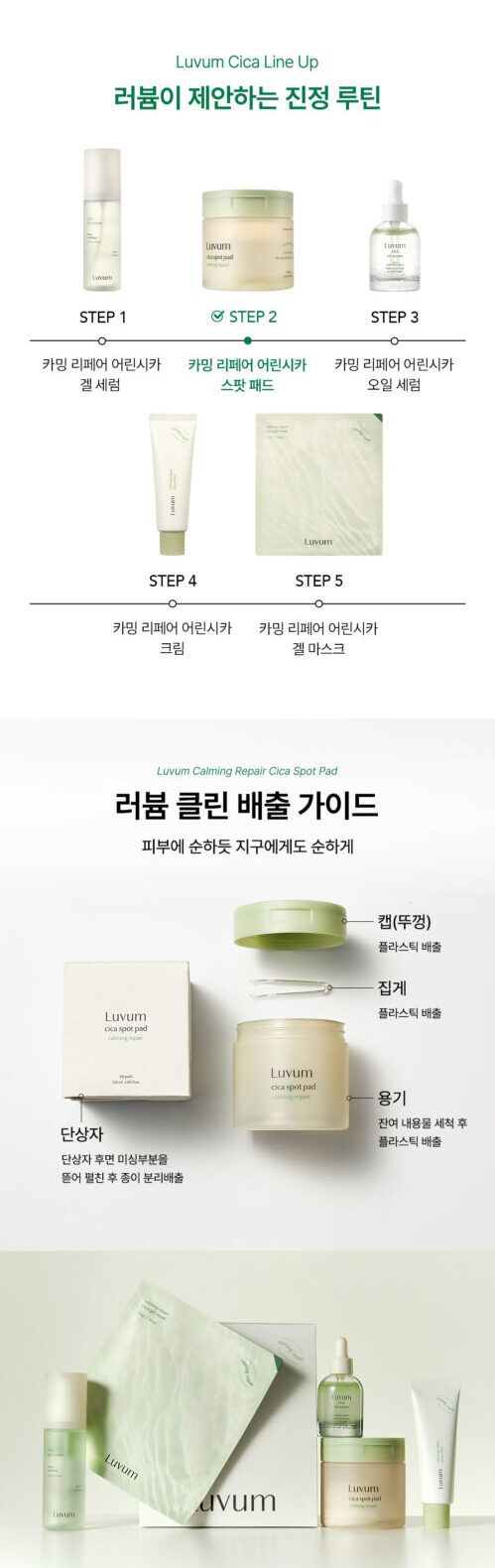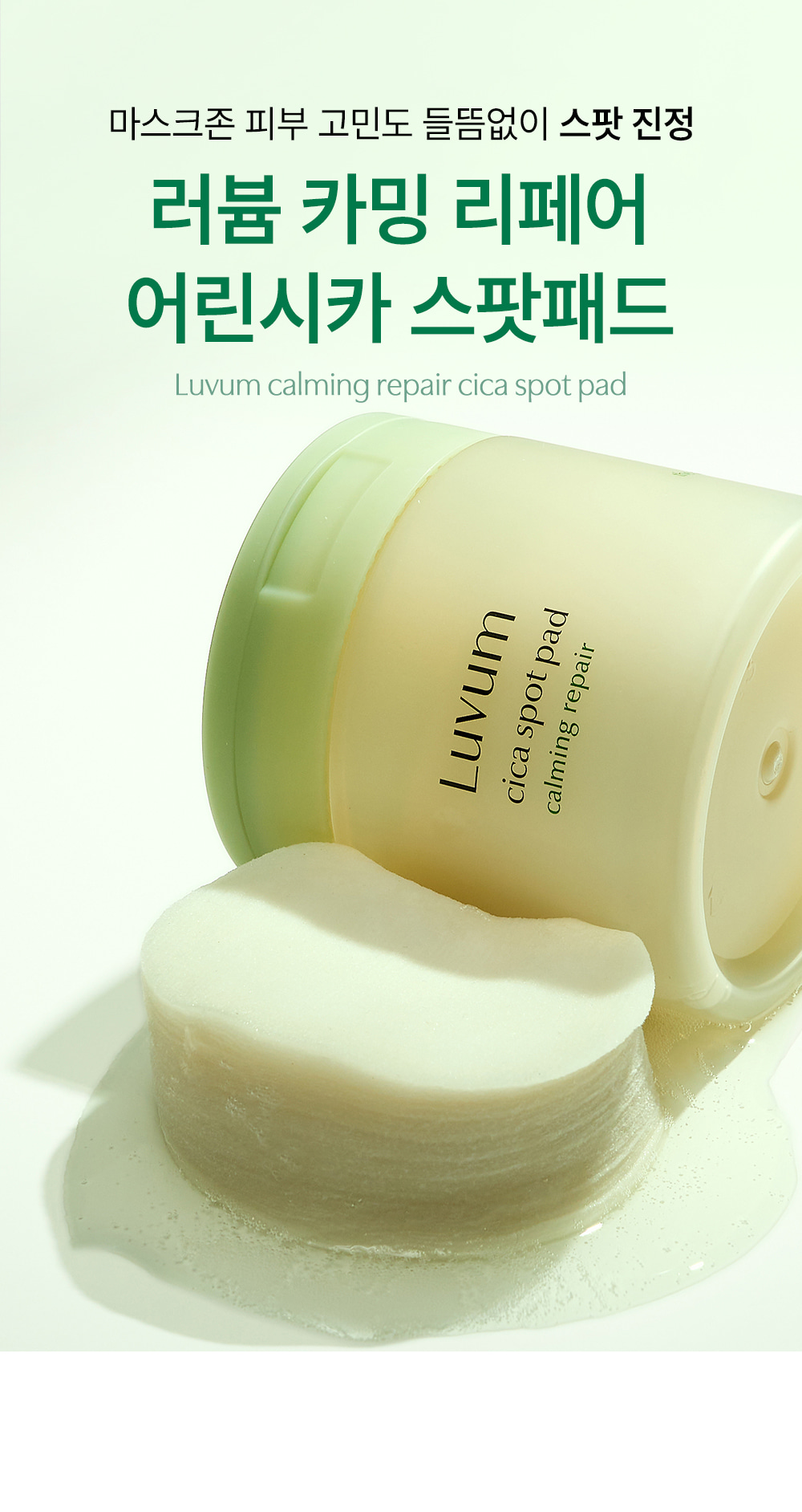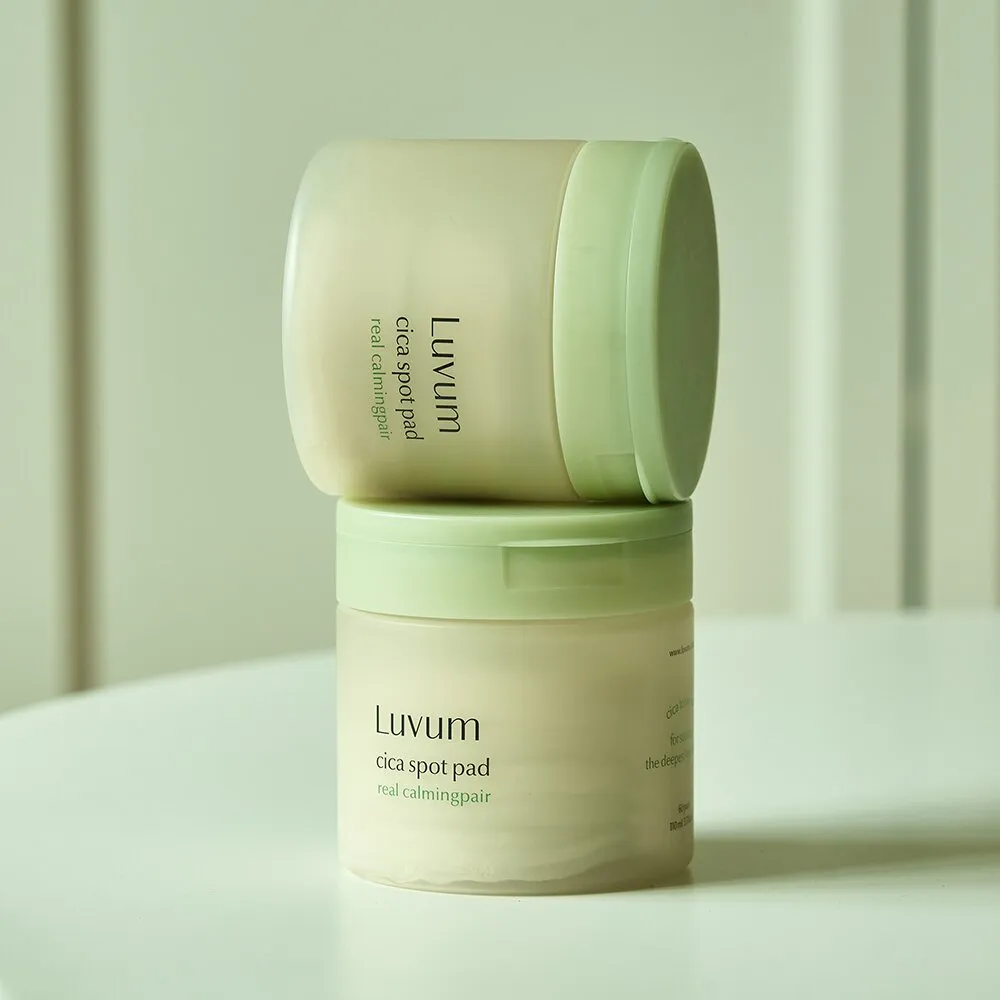 This is the luvum Real Calming Pair Cica Spot Pad. One sheet of young Cica pad can soothe sensitive and problematic skin more quickly and powerfully. Compared to regular mature Centella Asiatica, it has a 32.6% more powerful soothing effect on the skin.