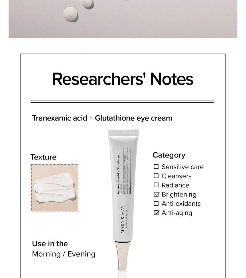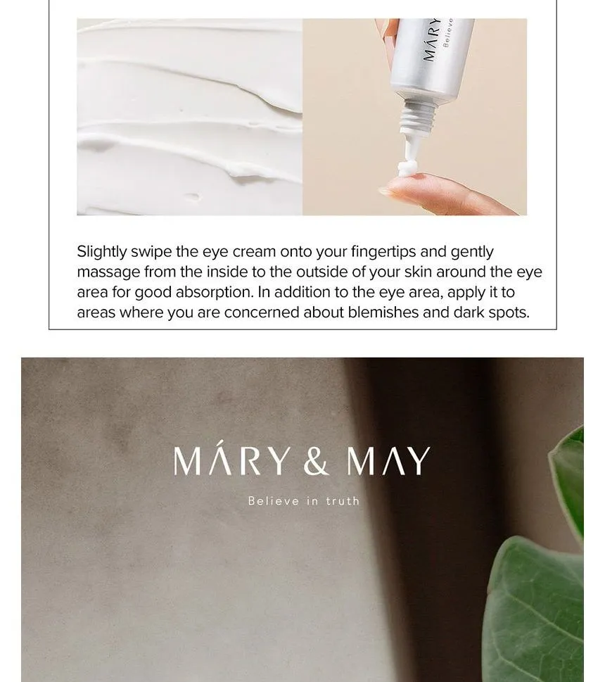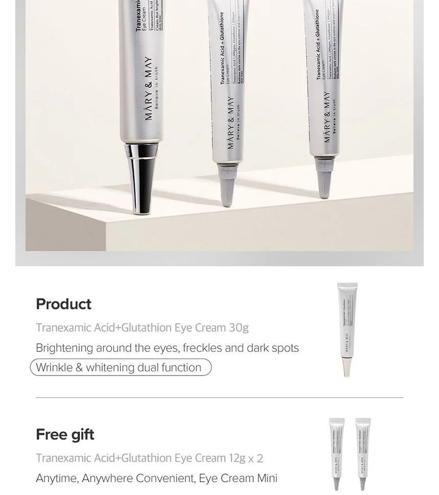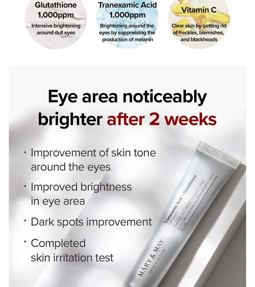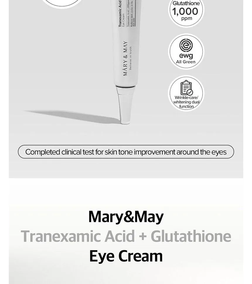 โญ Mary & May Tranexamic Acid + Glutathione Eye Cream โ Brightening, Depuffing, DarkโCircle Eraser
