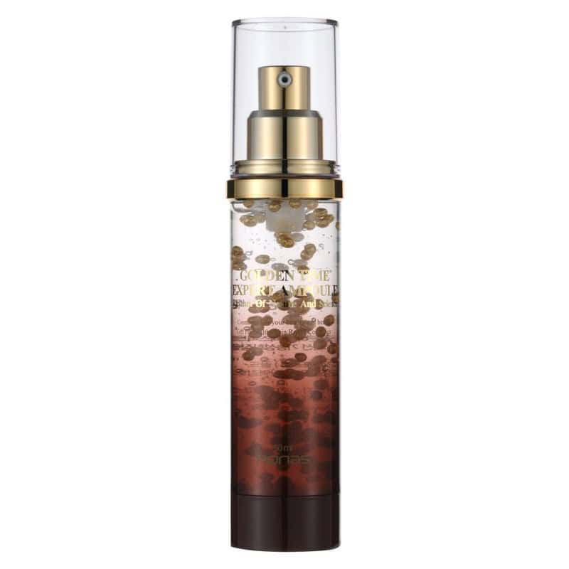 Ingredients: Water, Butylene Glycol, Glycerin, Phenyl Trimethicone, Cyclopentasiloxane, Dicaprylyl Carbonate, Pentaerythrityl Tetraisostearate, Synthetic Fluorphlogopite, Neopentyl Glycol Diheptanoate, Cyclohexasiloxane, GlycerylStearate, ArachidylAlcohol, 1,2-Hexanediol, ButyrospermumParkii(Shea)Butter, Royal Jelly Extract, FragariaChiloensis(Strawberry) Fruit Extract, Propolis Extract, Vaccinium Angustifolium(Blueberry) Fruit Extract, Malpighia Punicifolia(Acerola) Fruit Extract, Rubus Fruticosus(Blackberry) Fruit Extract, Brassica Napus Extract, Cetyl Alcohol, Titanium Dioxide, Behenyl Alcohol, Dimethicone, Trehalose, Panthenol, PEG-40Stearate, Arginine, Arachidyl Glucoside, Carbomer, PEG-100Stearate,PVP, Sodium Acrylate/Sodium Acryloyldimethyl TaurateCopolymer, Isohexadecane, Xanthan Gum, Adenosine, Disodium EDTA, Polysorbate80, Glucose, Tocopheryl Acetate, MyristylAlcohol, CI77491, Stearyl Alcohol, Colloidal Gold, Colloidal Platinum, Gold, Phenoxyethanol, Sodium Citrate, Fragrance